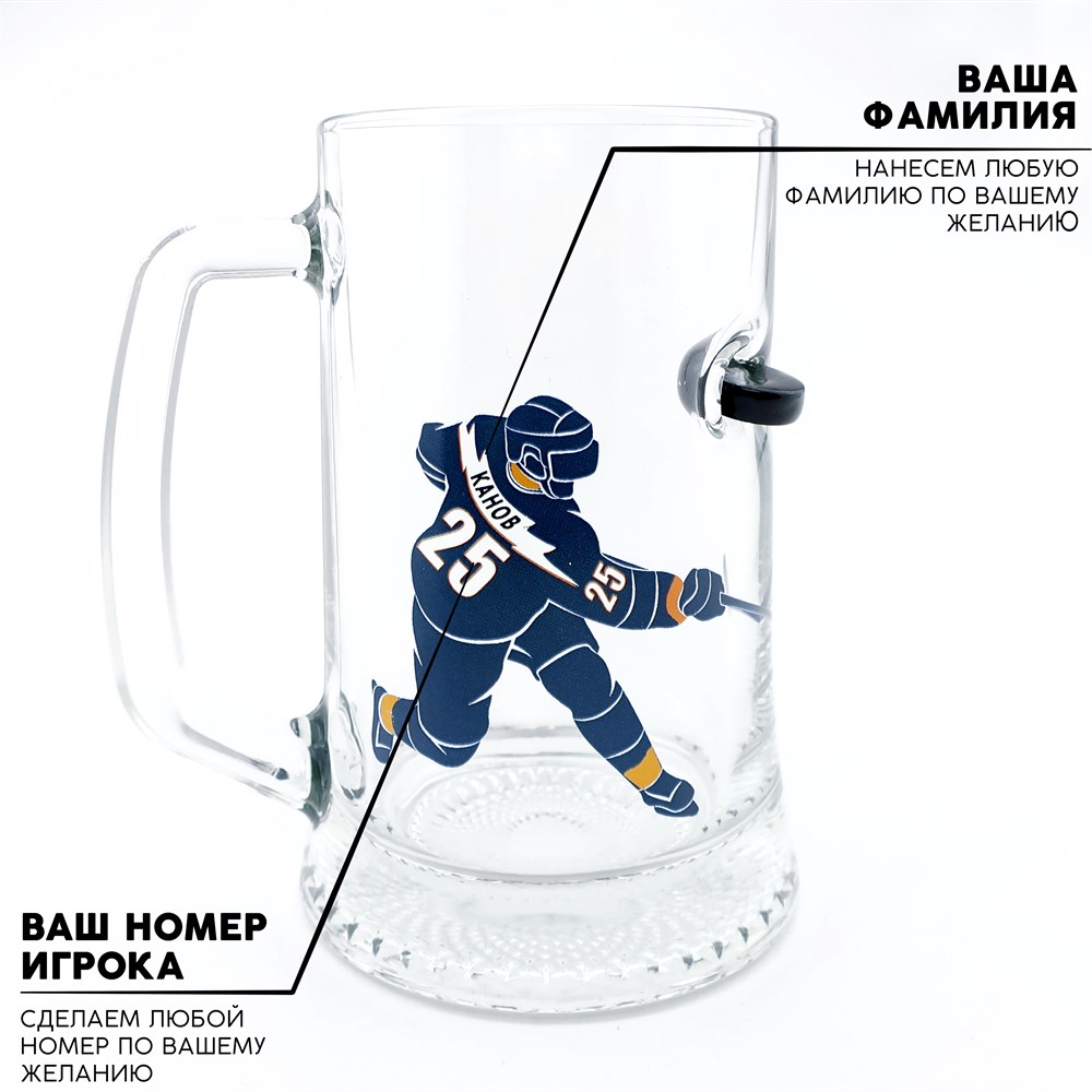 Пивная кружка Бадди с хоккейной шайбой и витражным рисунком Нападающий